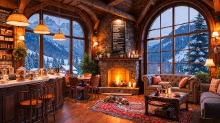 4K Winter Coffee Shop Ambience with Smooth Jazz Music ❄️ Winter Jazz & Crackling Fireplace for Relax