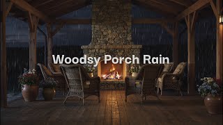 Gentle Porch Rain & Mild Thunder for Deep Sleep | Fireplace Ambience in the Woods 😴