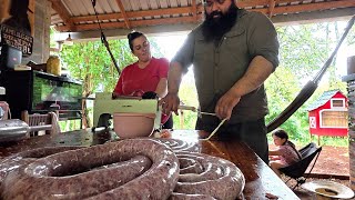 fazendo salame, defumando e guardando a banha de porco