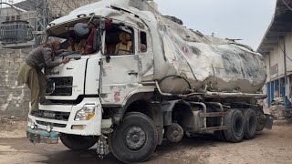 Emergency truck repair! Heavy truck load accident damaged front axle and broken gear brakes failed.