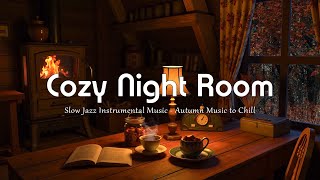 Cozy Night Room | Tranquil Jazz by the Fireplace 🌧 Autumn Rain Cabin Ambience for Deep Focus
