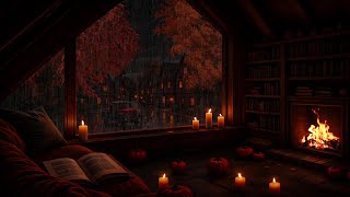Rain Against the Window 🌧️ Cozy Fall Ambience with Coffee, Books & Fireplace | Autumn Ambience