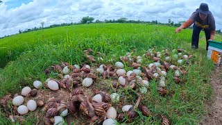 wow wow unique - harvest a lot of duck egg and snail under grass at ride field by hand skill